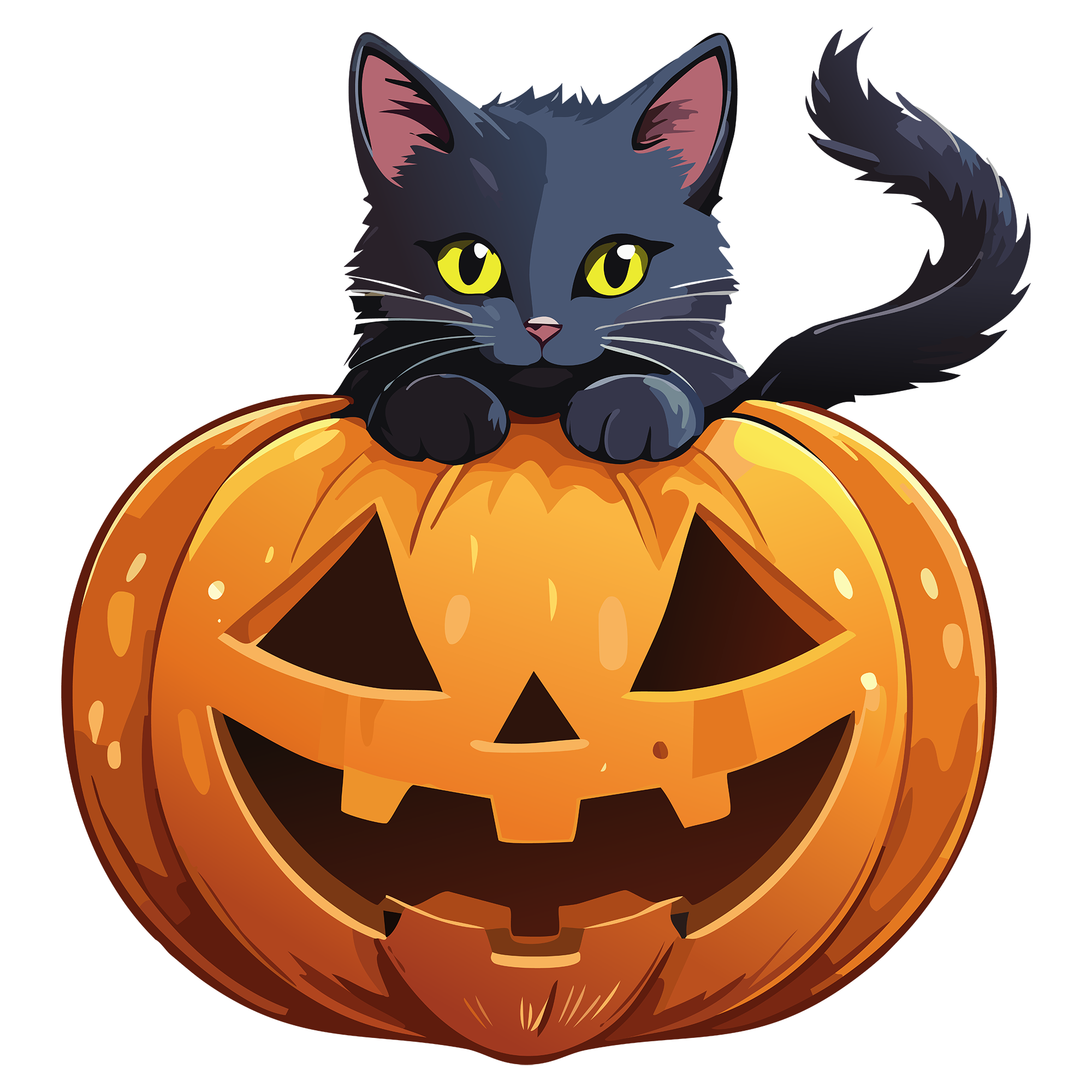 猫アイコン素材|ハロウィンの黒猫(H2000px/背景透過PNG)