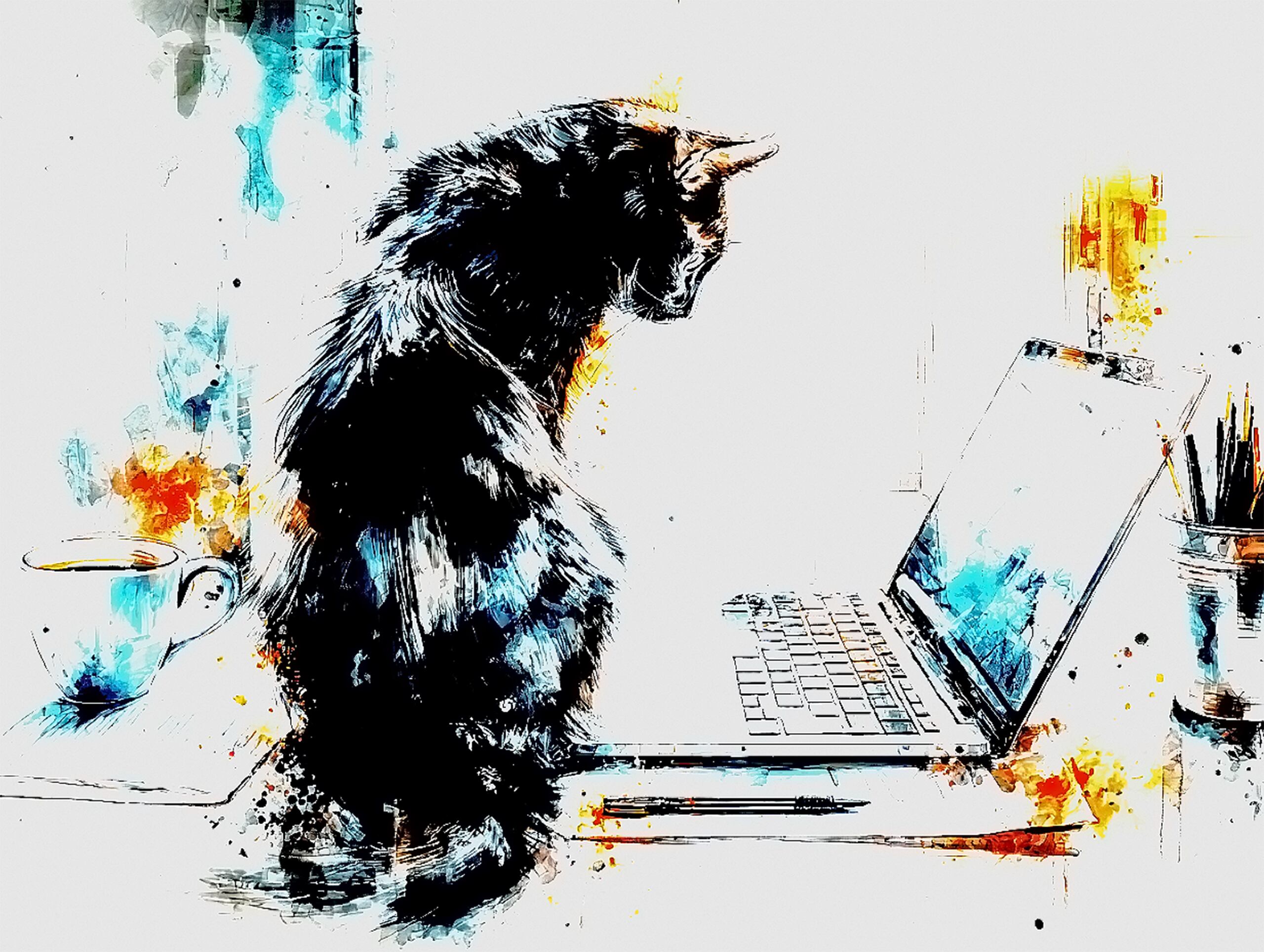 黒猫のデジタル素材。思考が静かに流れる午後の風景。