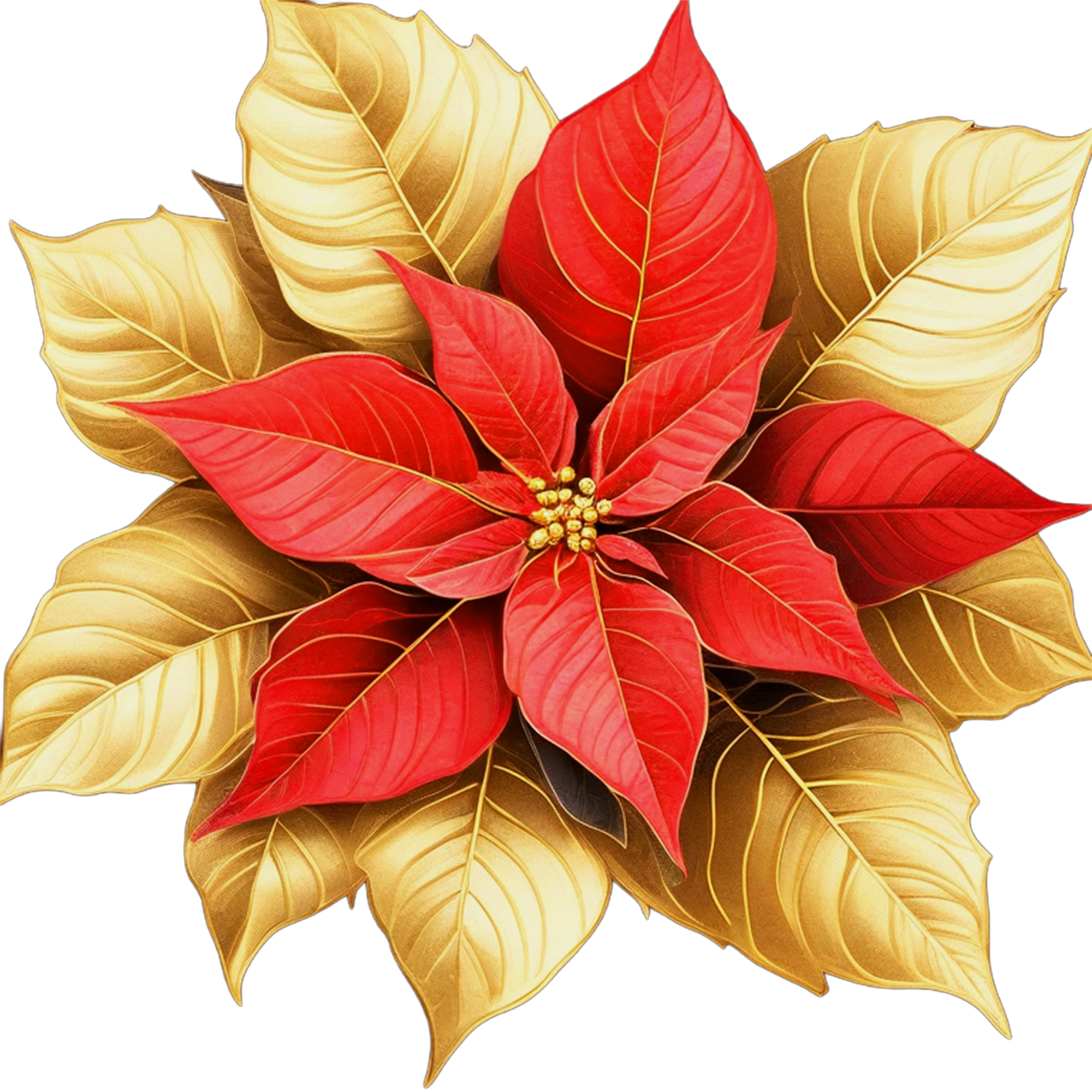ポインセチアアイコンNo.3|深紅×ゴールドのラグジュアリーポインセチア(背景透過PNG)