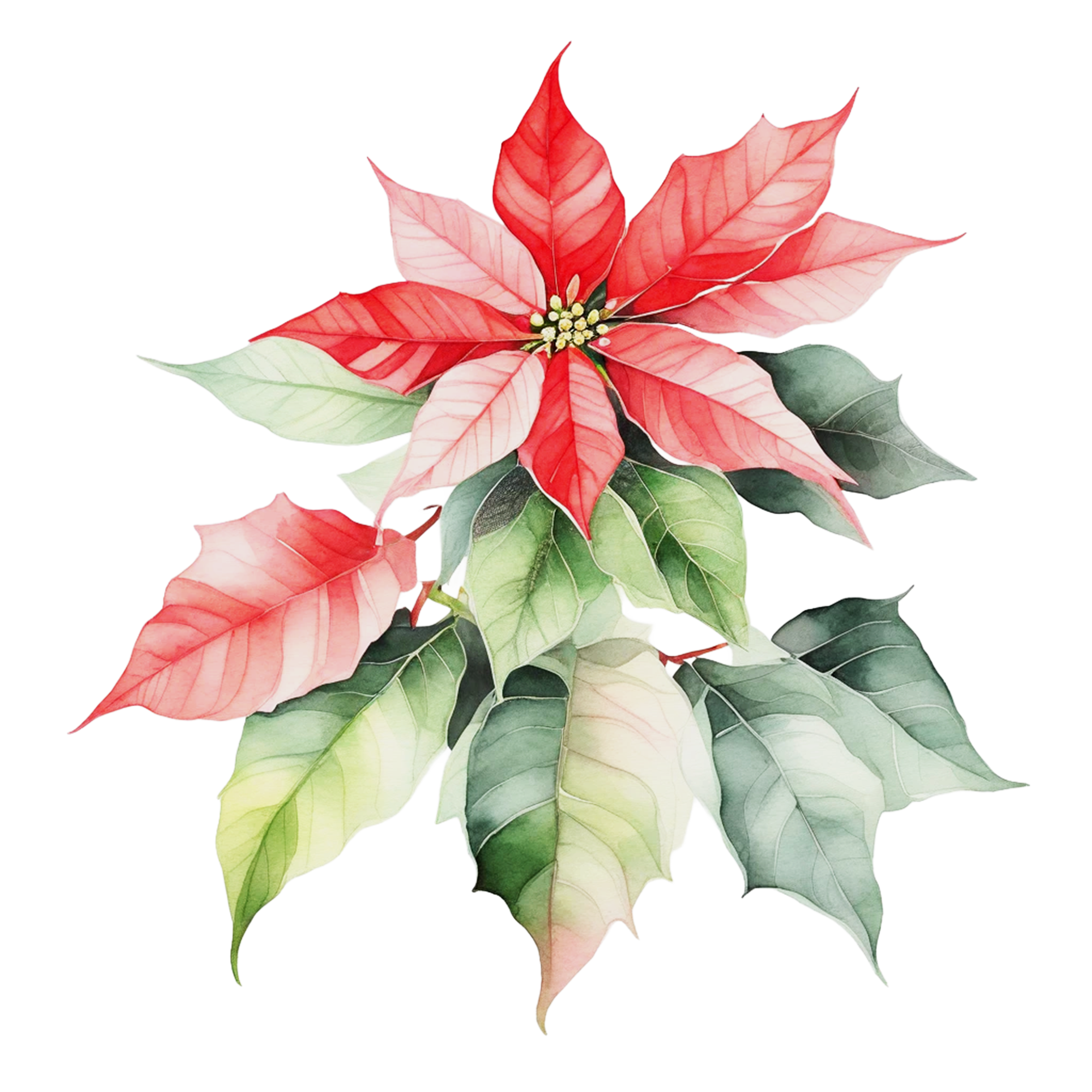 ポインセチアアイコンNo.5|淡彩ライトトーンのポインセチア(背景透過PNG)
