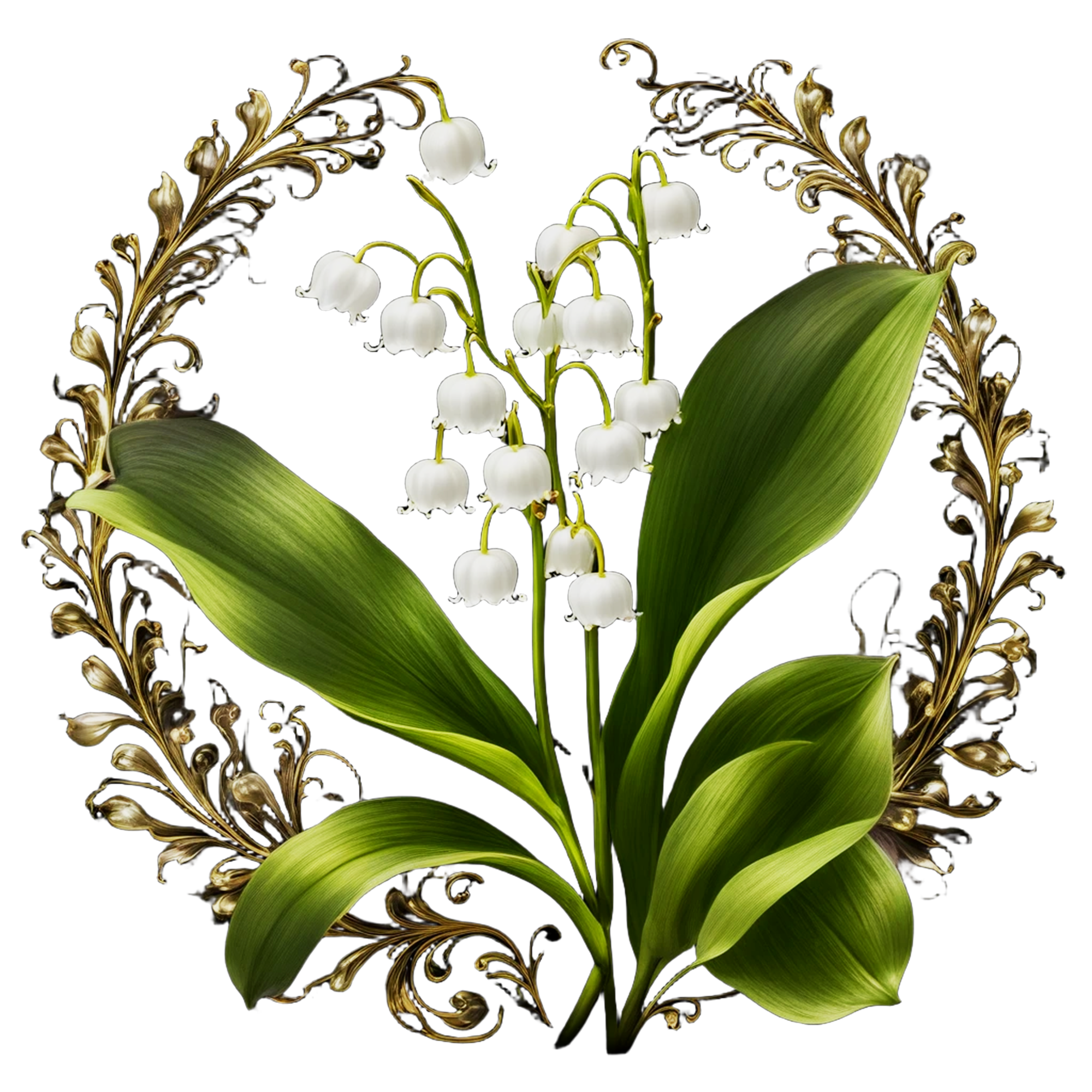 可憐な白いスズランに、クラシックな黄金装飾フレームを組み合わせた上品なデジタル花素材です。