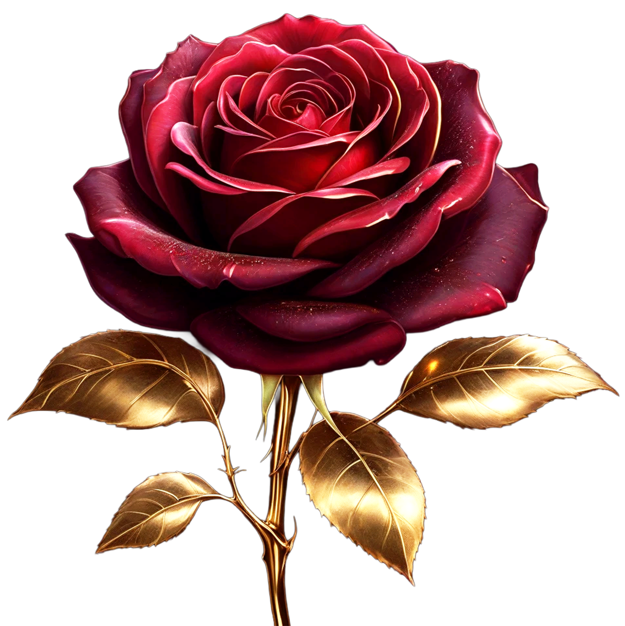 深紅の光を纏い、黄金の葉脈が夜の闇に浮かびあがる“王冠の薔薇(Royal Crimson)”をテーマにしたアイコン素材です。