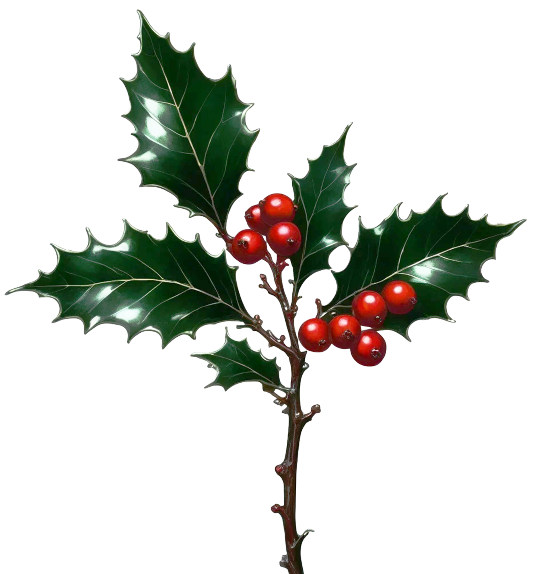 ホーリーアイコン No.1|柊・クリスマス素材(2000px / 背景透過PNG)