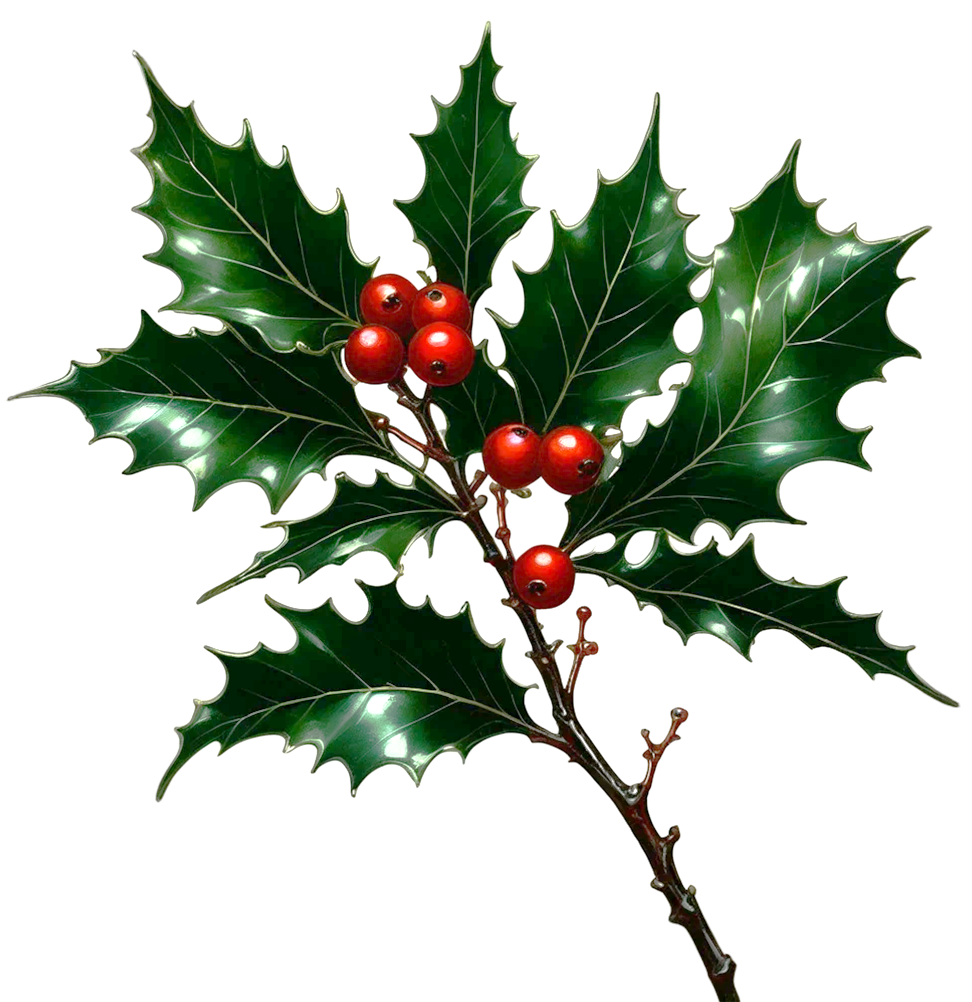 深い冬の静けさに映える、鋭い葉と赤い実が美しいホーリー(柊)のアイコン素材です。