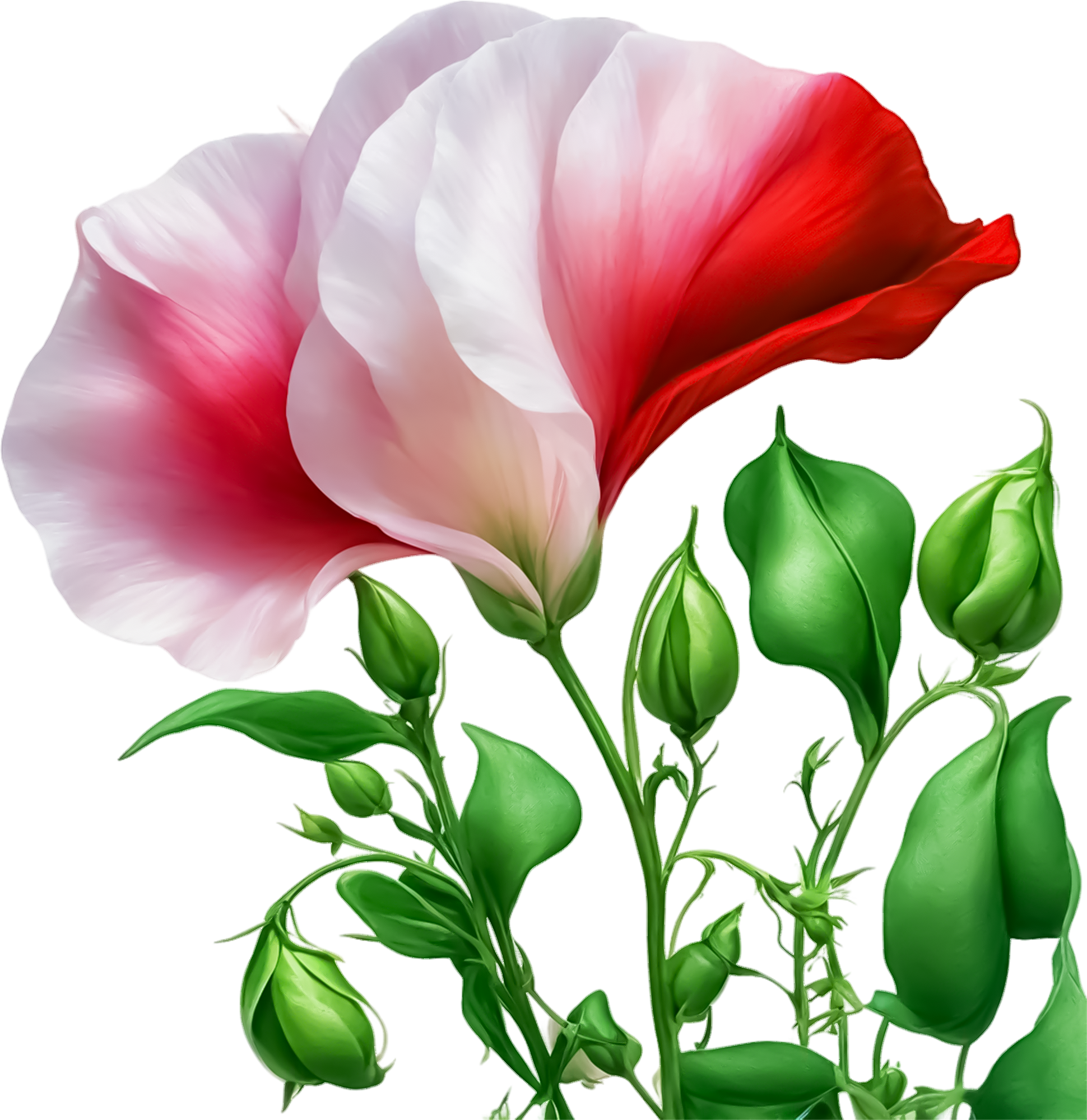 1月の誕生花スイートピーより、情熱的な赤と柔らかなピンクが美しく溶け合うデザインのデジタル素材です。