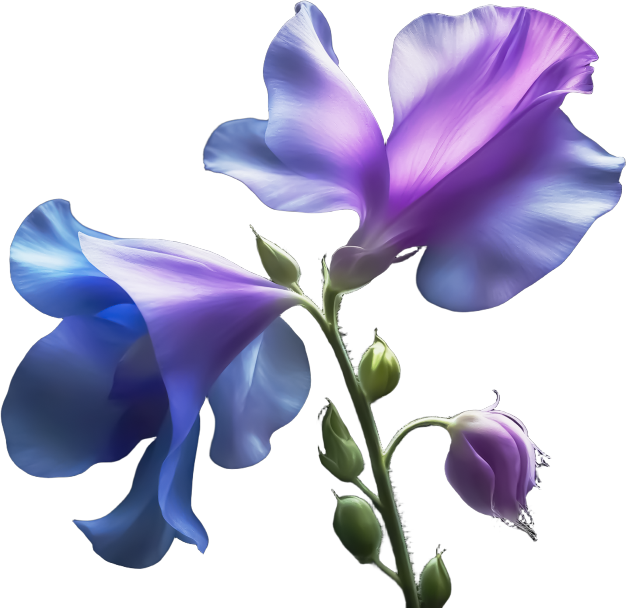 1月の誕生花スイートピーを、紫と青のグラデーションで繊細かつ幻想的に表現したデジタル素材です。