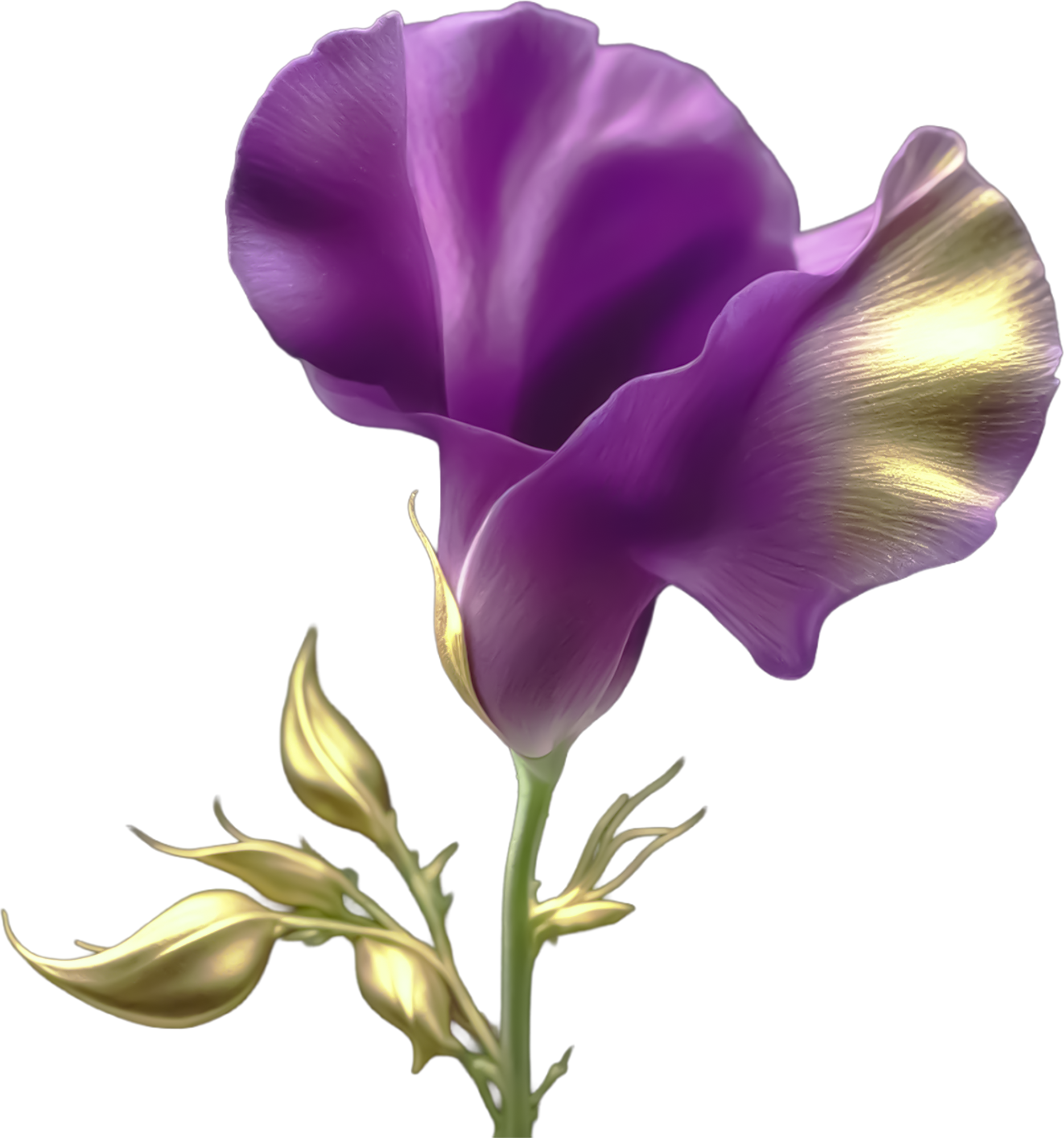 深みのあるロイヤルパープルに金の光が差す、華やかで印象的なスイートピー。