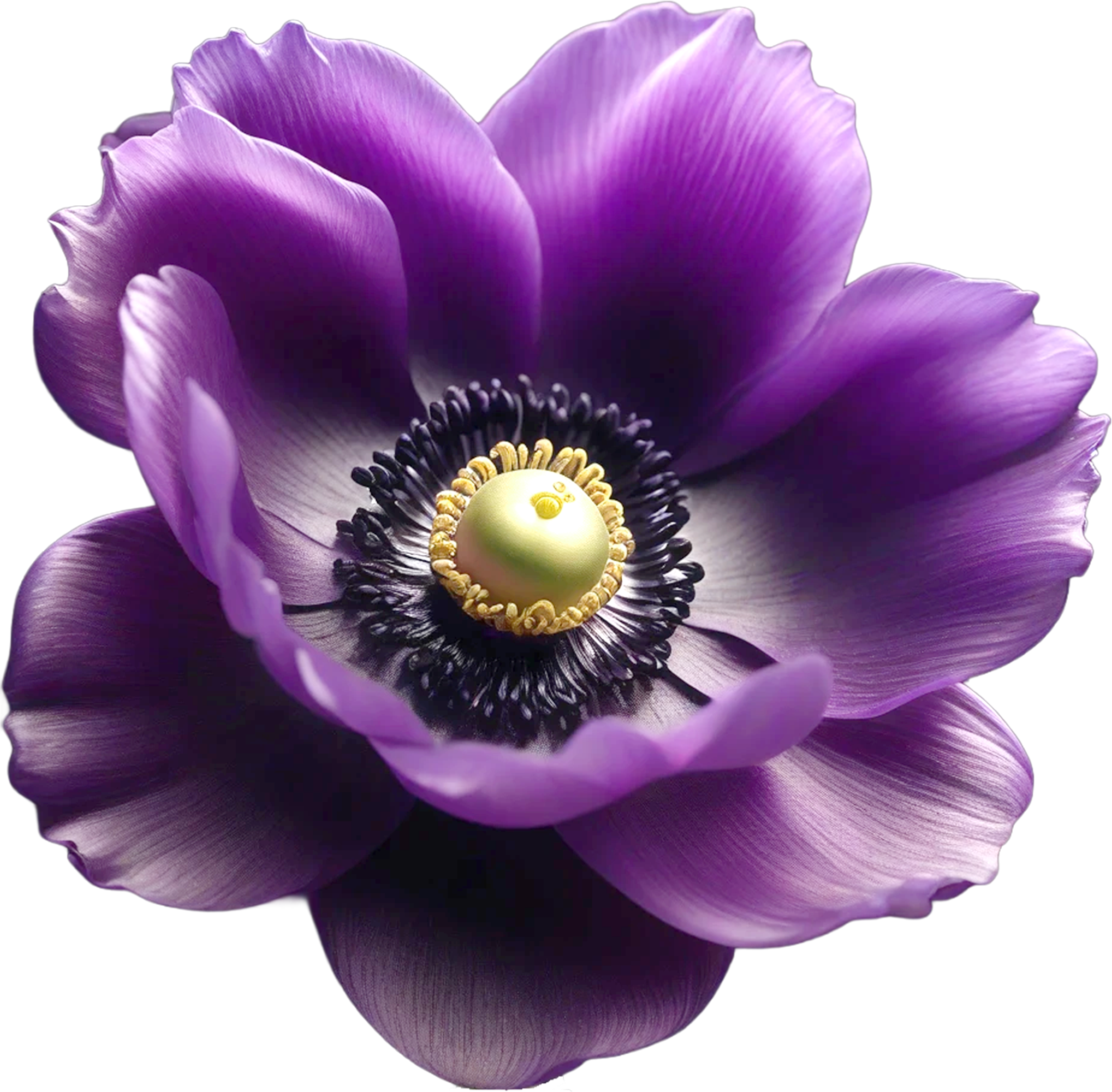 深い紫の花弁と、柔らかな光を宿した淡い黄色の花芯が美しく響き合うアネモネのアイコンです。