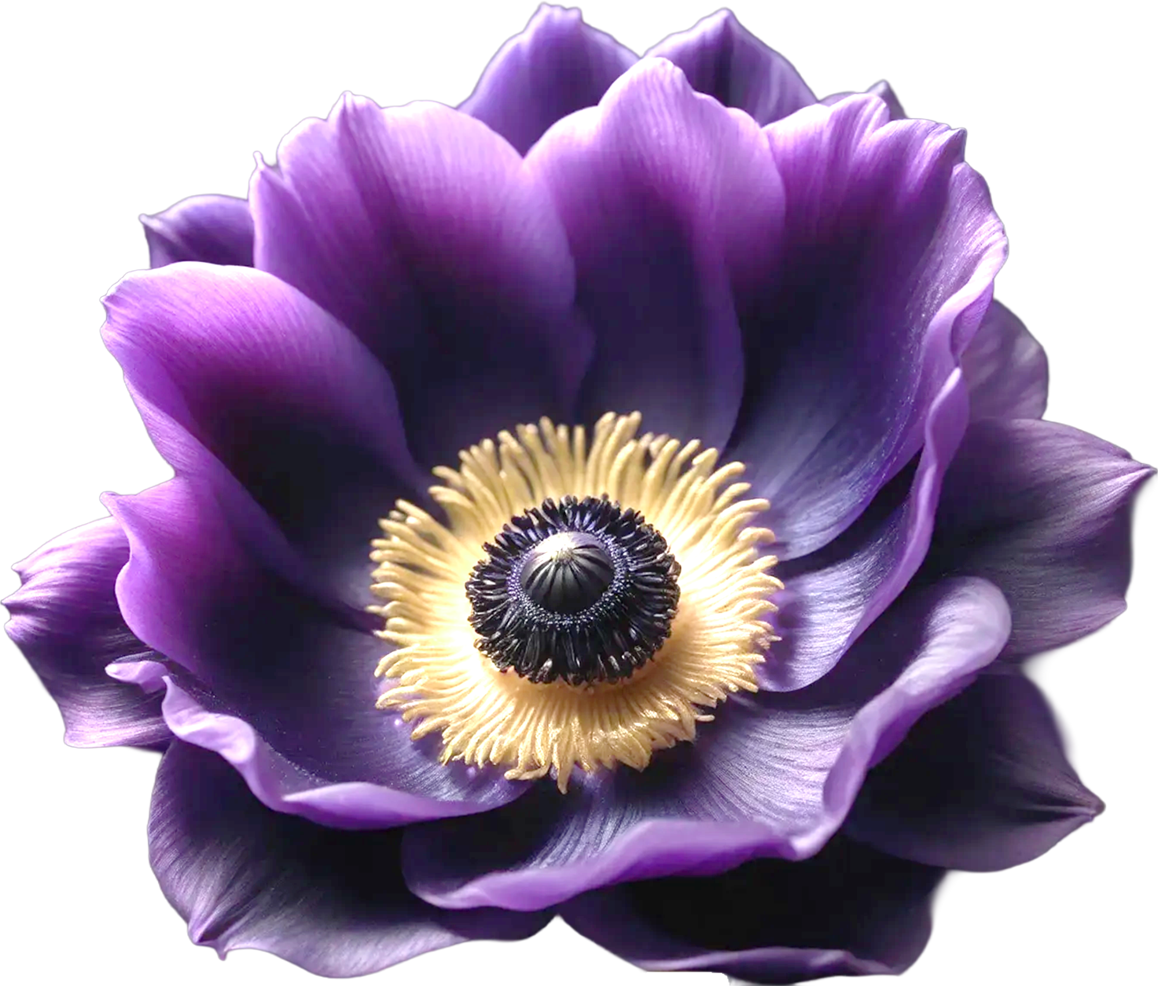 深く気品あるパープルの花弁に、柔らかなゴールドの芯が灯るアネモネ No.15。