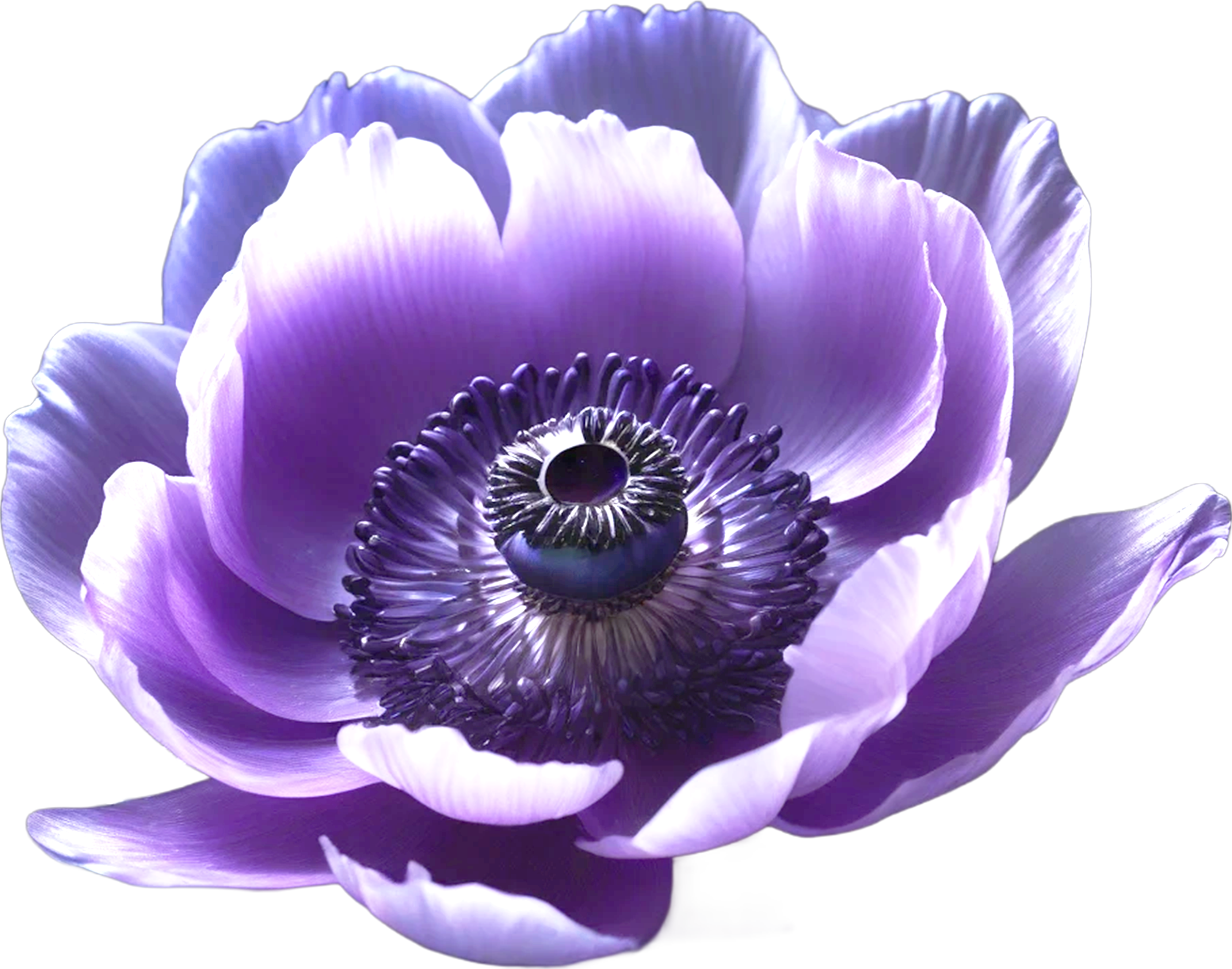 柔らかなライラックトーンを中心に、光沢のある花弁が重なり合うアネモネのアイコン素材。