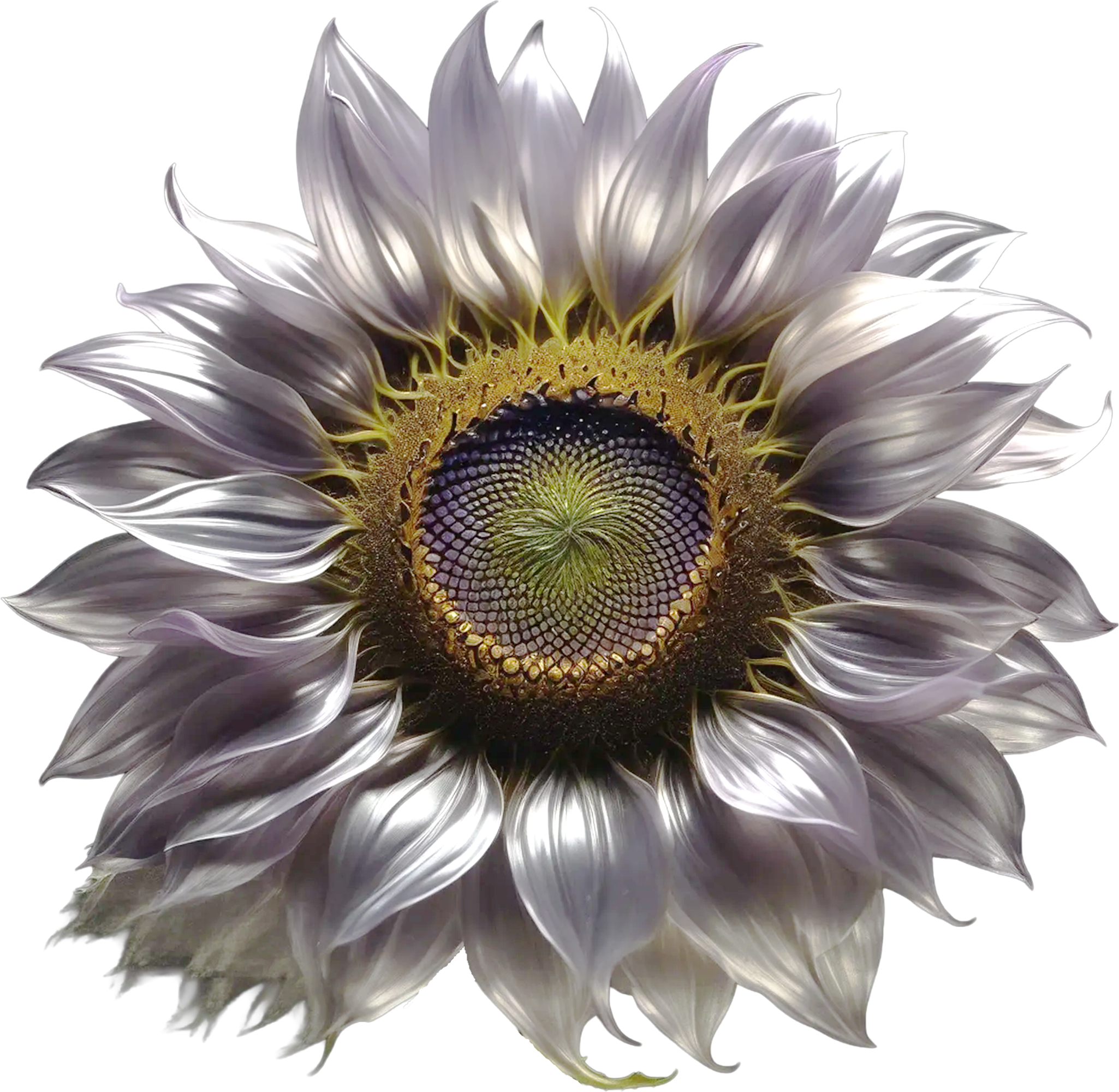白銀と淡紫の輝きをまとった幻想的なひまわりアイコン。