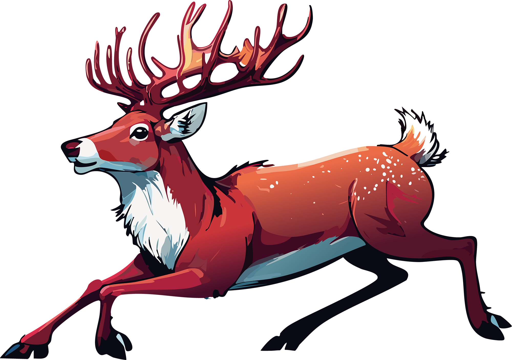 鮮やかな赤い身体と大きな角が印象的なトナカイのアート素材です。