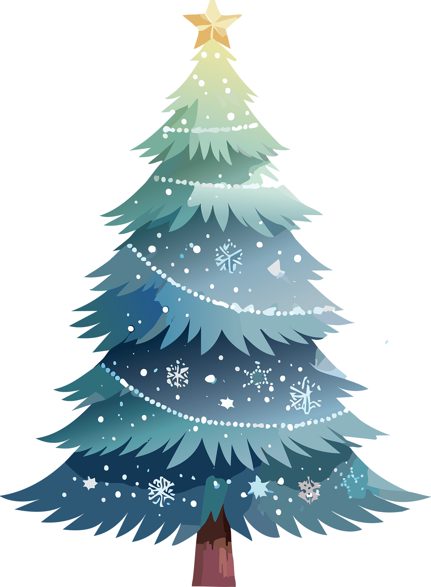 クリスマスアイコン。淡いグラデーションで雪明かりをまとった静かなツリー。