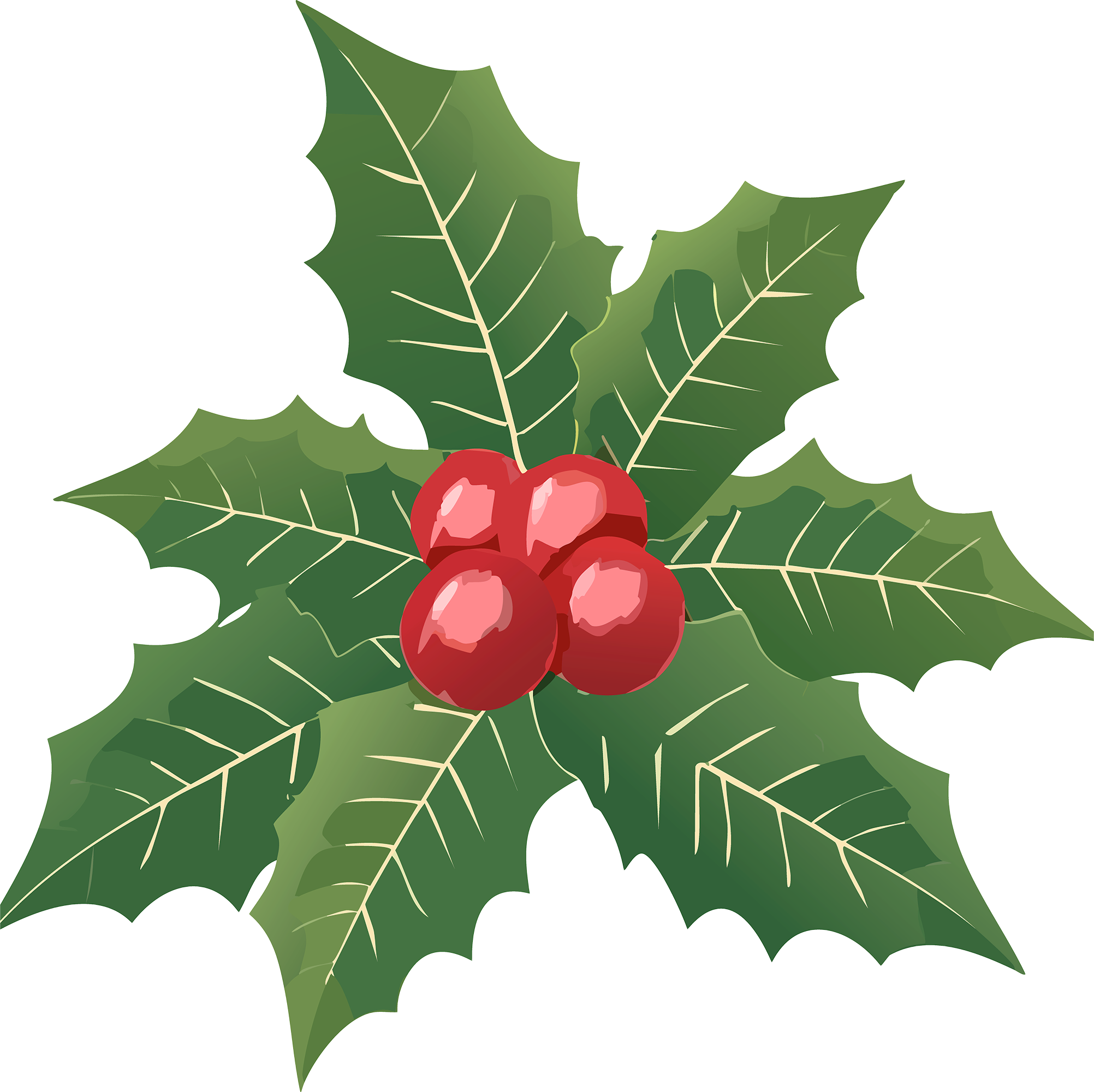 クリスマスを彩る冬のホーリーを、柔らかなタッチで描いたイラストアイコン。