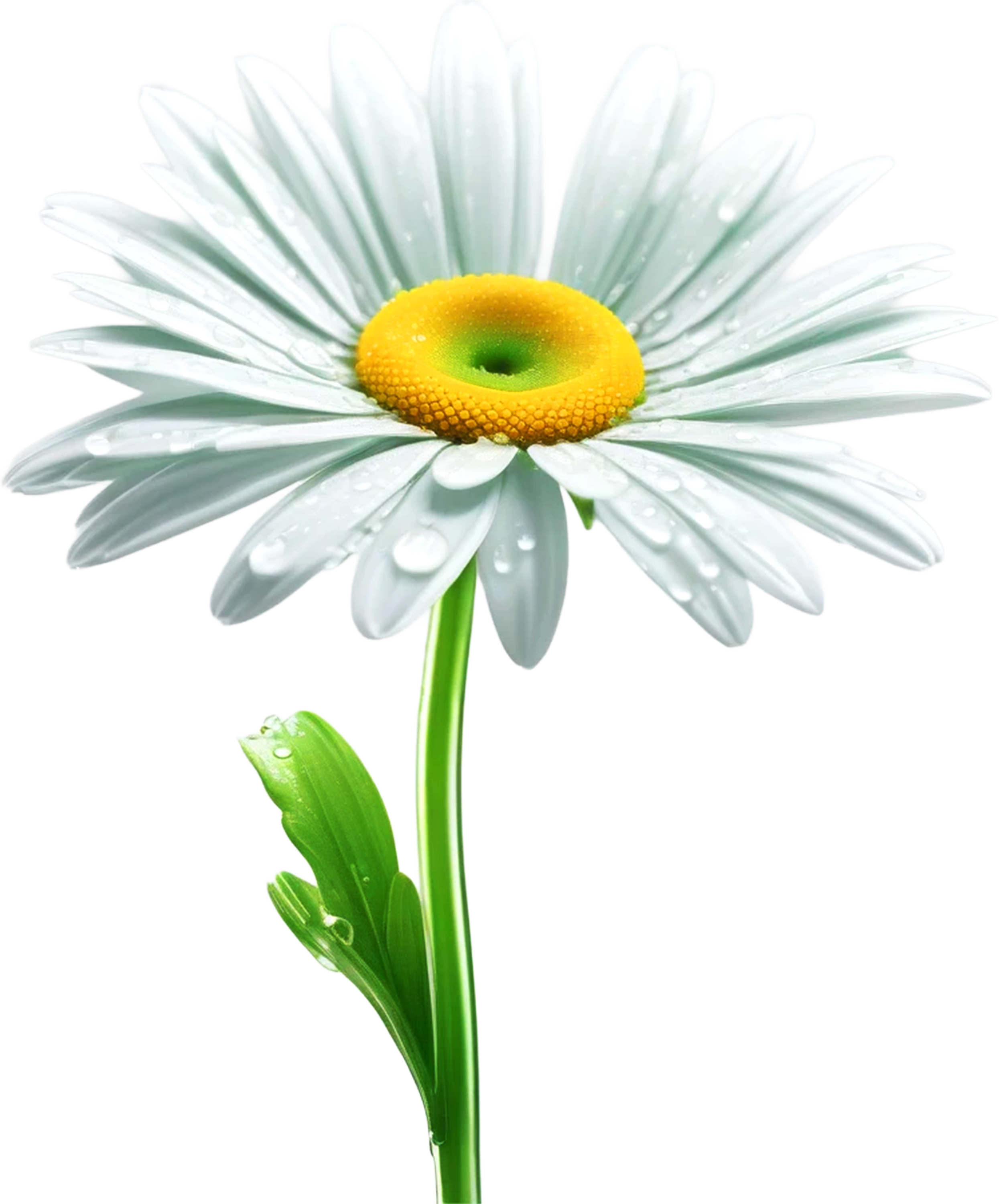瑞々しい白いデイジーに、水滴のきらめきを丁寧に残して仕上げた高品質デジタル素材です。