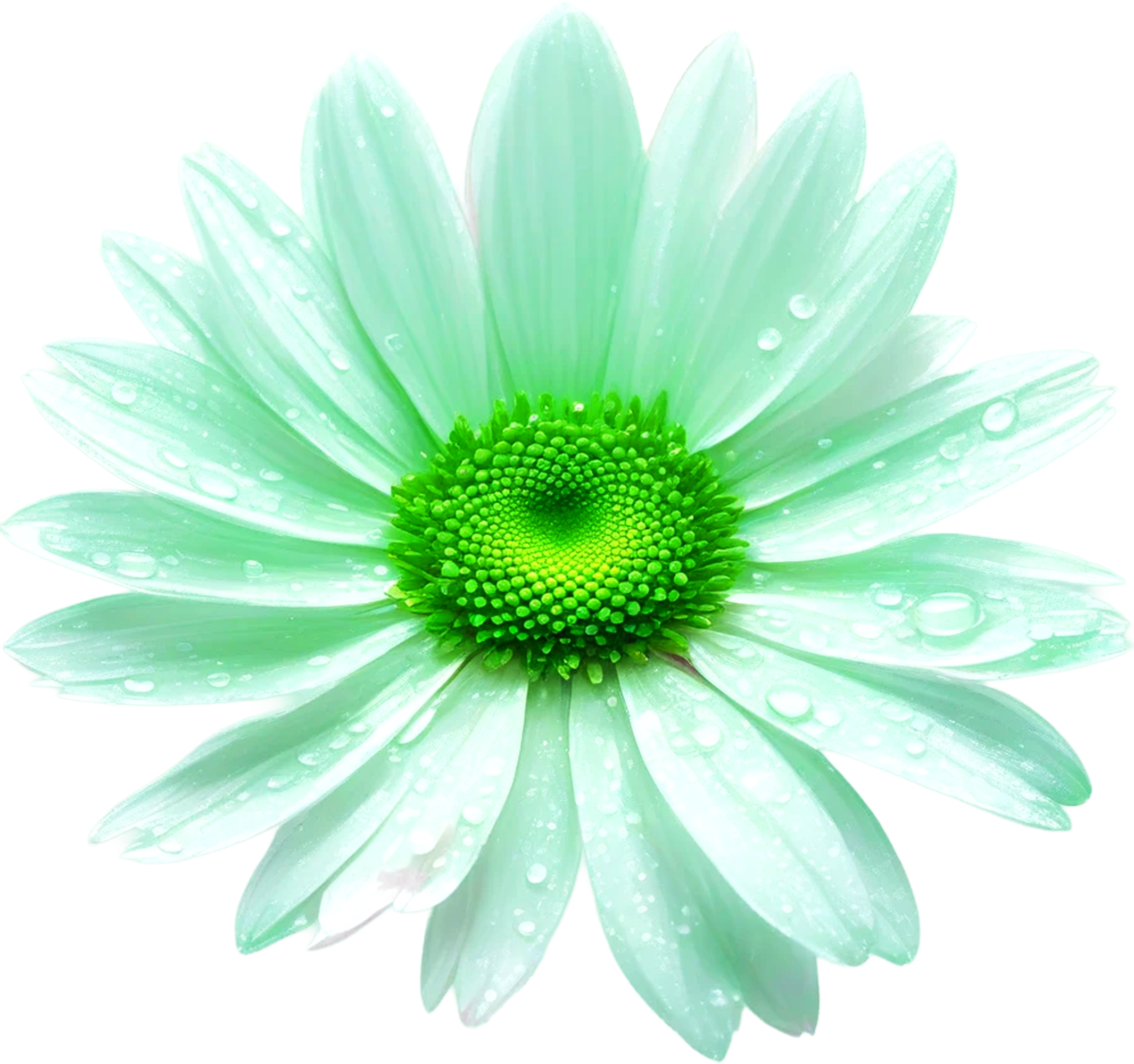 爽やかなミントグリーンのデイジーを、水滴の輝きまで丁寧にレタッチした高品質デジタル素材です。