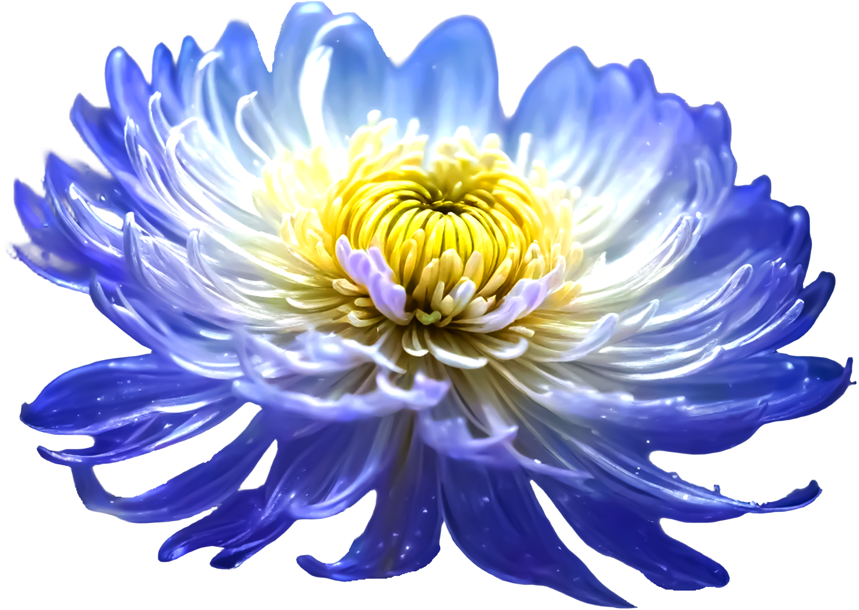 鮮やかなブルーと柔らかなホワイト、そして中心のゴールドが織りなす、光の花のような菊アイコン No.16。
