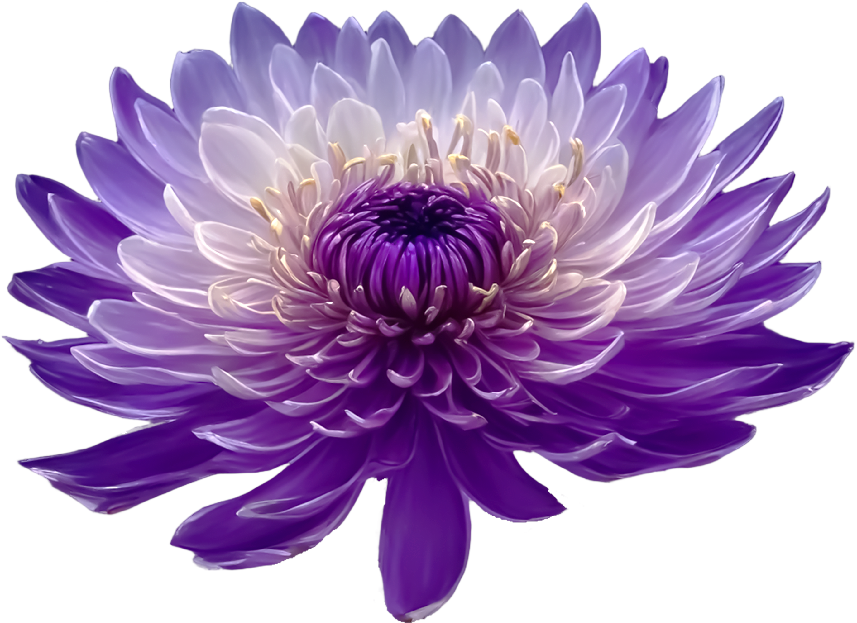 淡いライラックから深い紫へと滑らかに移り変わる花びらが美しい、幻想的な菊アイコン No.18。