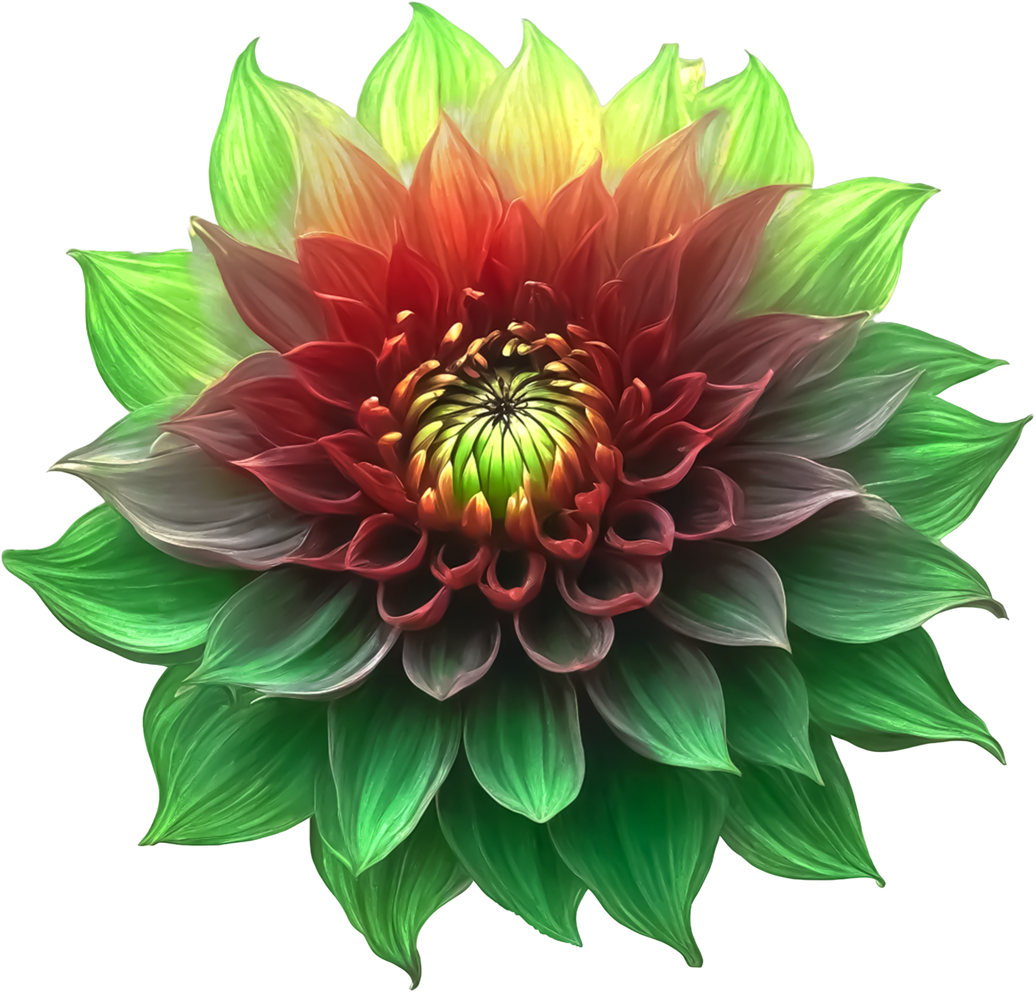 中心の赤は熱、意志、衝動。外側へ向かう緑のグラデーションは、その衝動が世界に触れようとする成長の方向性。