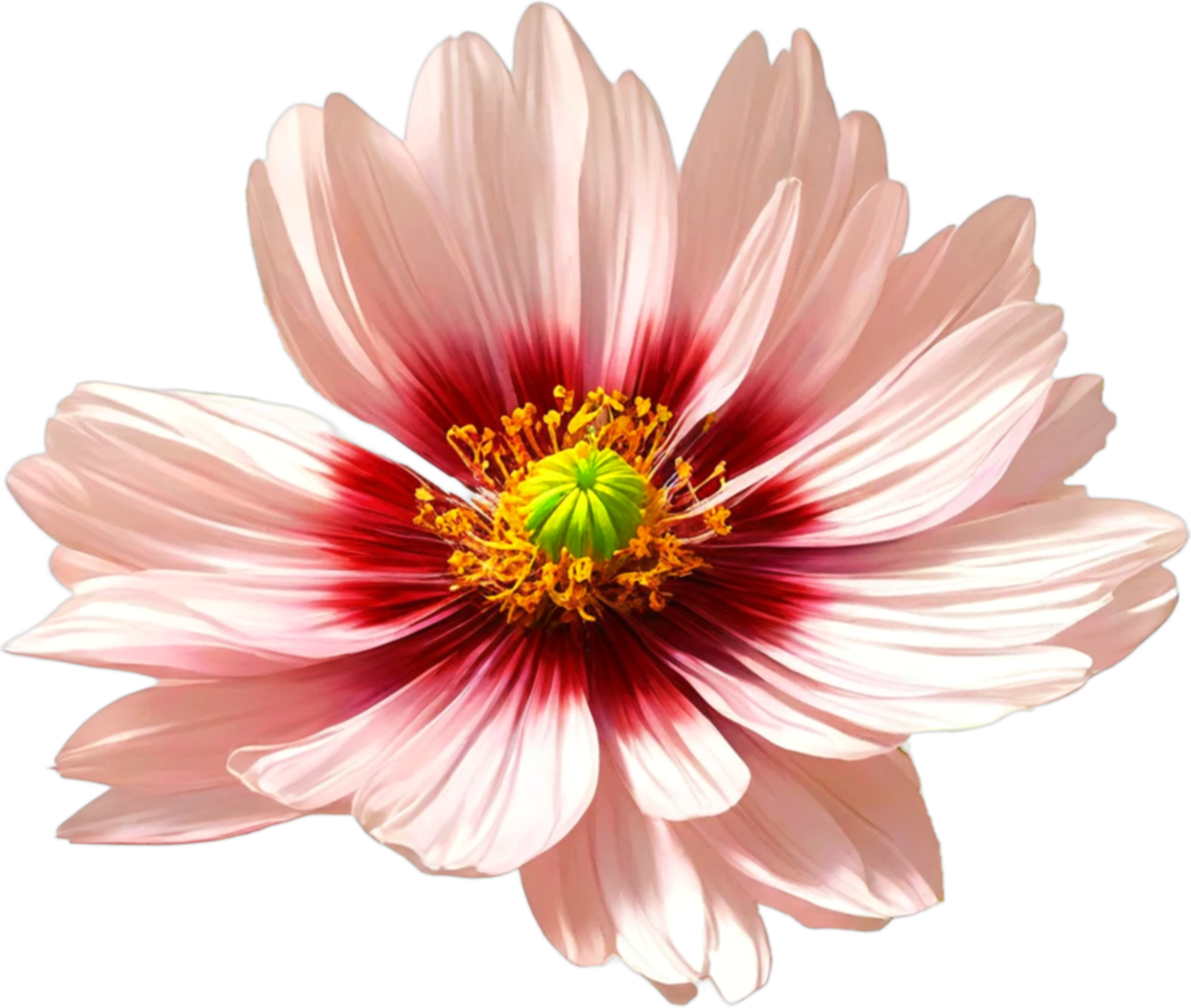 淡い花弁にすっと染み込む深紅が、美しい綾を描くコスモス。