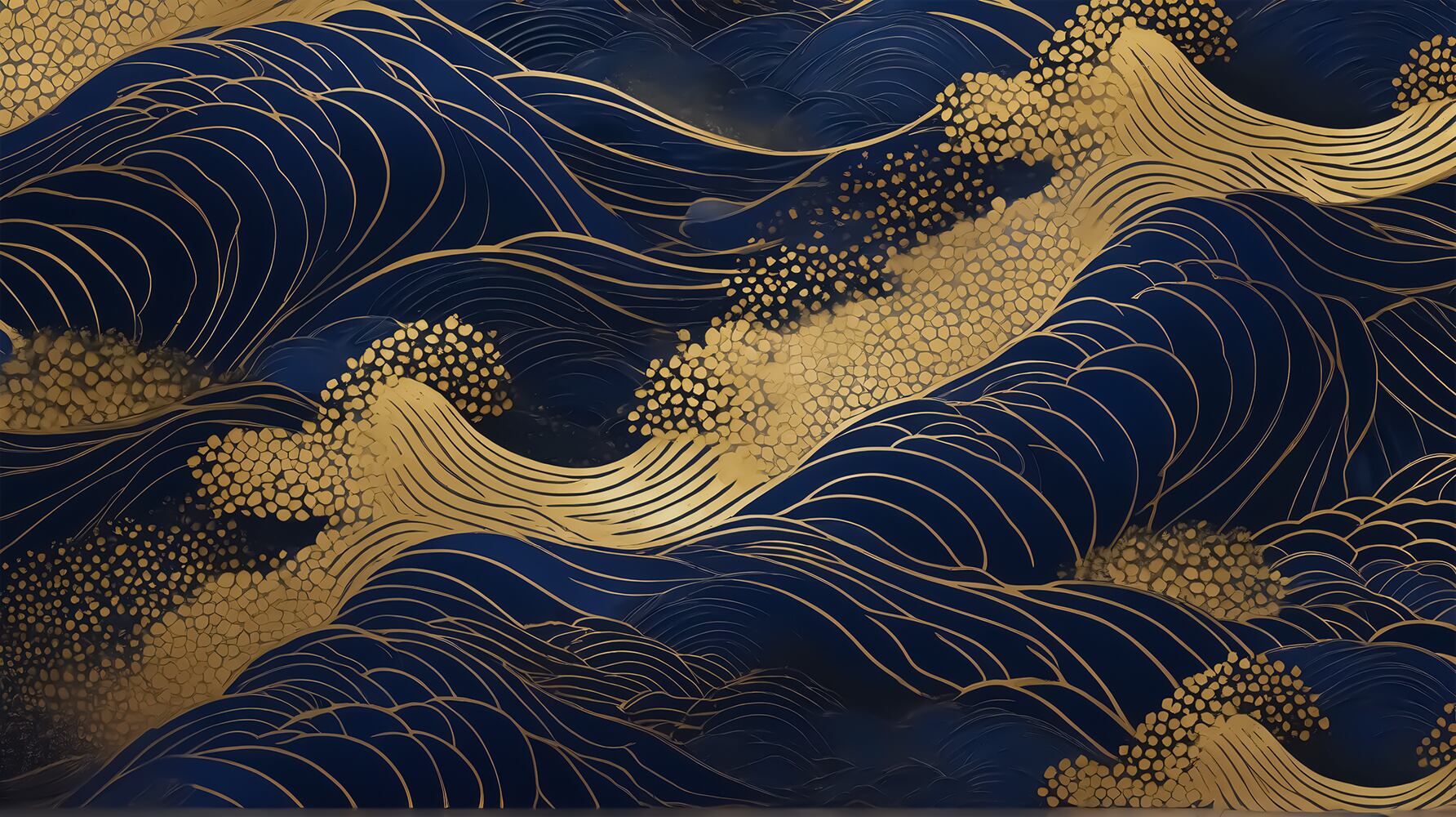 金彩波文様 背景素材〈濃紺〉(3840×2153px)