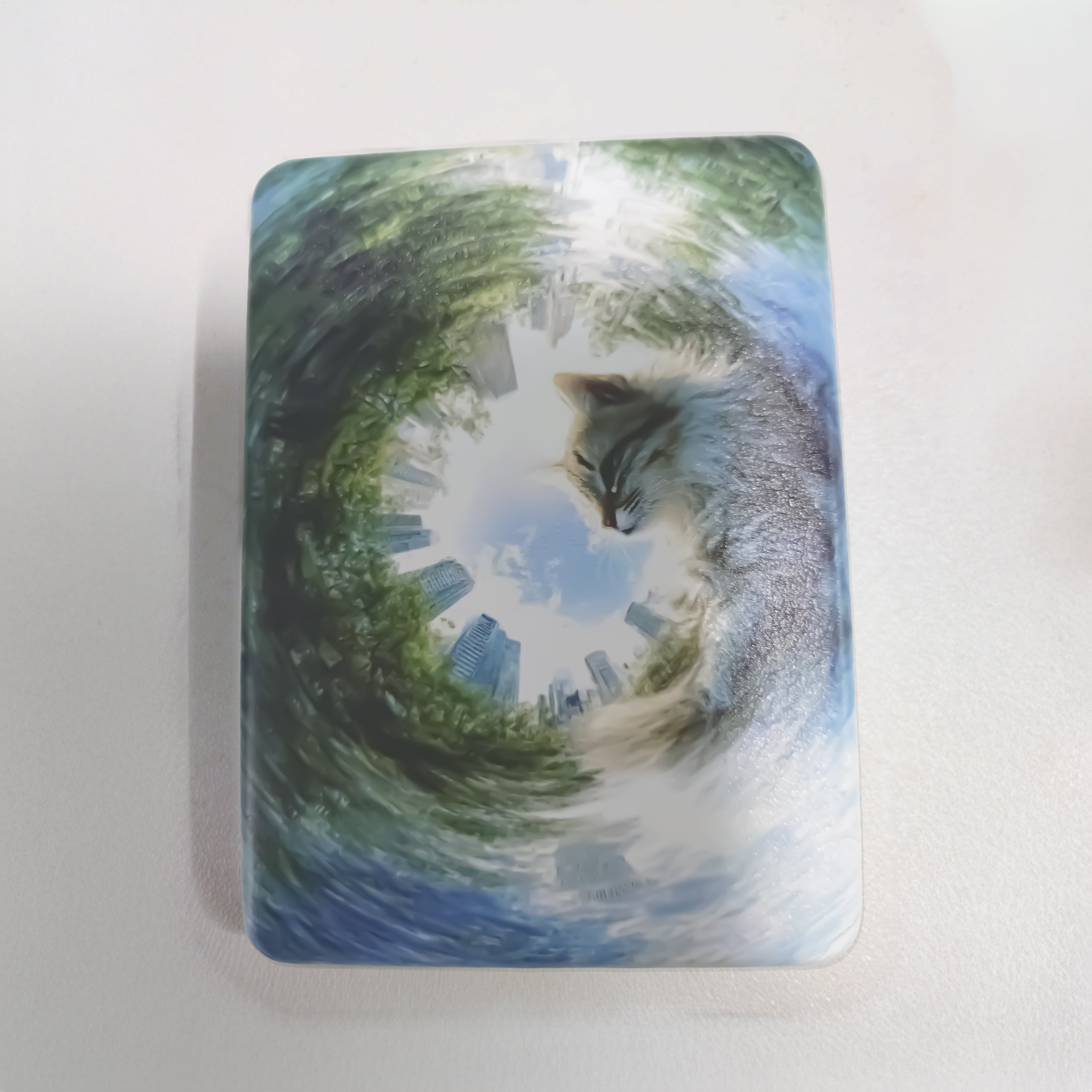 やわらかな色彩で描かれた白猫を表に配した、コンパクトタイプの手鏡です。