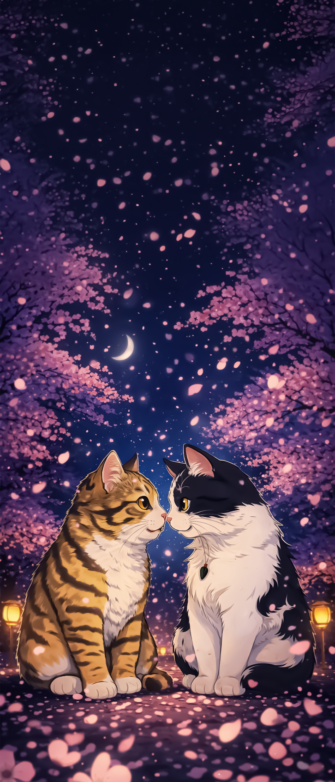 舞い散る桜と月明かりが包み込む、静かであたたかな春の夜の物語。